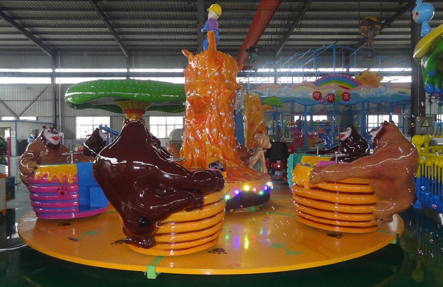Аттракцион карусель Bear Cup из серии каруселей типа Круговая – красочное и увлекательное развлечение как для детей, так и для взрослых. Развлекательный аттракцион карусель Bear Cup – отличный вариант для торговых и игровых центров, зон отдыха, городских парков и площадей. Преимущества аттракциона Карусель Bear Cup: качественный дизайн, удобство и простота в управлении и эксплуатации, устойчивость конструкции, безопасность использования. Надежный электромеханизм приводит карусель Bear Cup в движение, плюс – оригинальное музыкальное сопровождение вызывает положительные эмоции у посетителей. Аттракцион Карусель Bear Cup оборудована по последнему слову техники и отвечает всем международным стандартам Украины. Карусели Bear Cup в развлекательных центрах и игровых детских центрах – это только самые фантастические моменты для детей и взрослых.