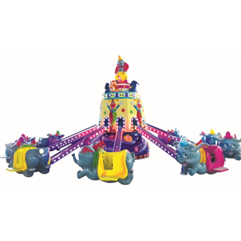 Аттракцион карусель Flying Elephant из серии каруселей типа Джет – красочное и увлекательное развлечение как для детей, так и для взрослых. Развлекательный аттракцион карусель Flying Elephant – отличный вариант для торговых и игровых центров, зон отдыха, городских парков и площадей. Преимущества аттракциона Карусель Flying Elephant: качественный дизайн, удобство и простота в управлении и эксплуатации, устойчивость конструкции, безопасность использования. Надежный электромеханизм приводит карусель Flying Elephant в движение, плюс – оригинальное музыкальное сопровождение вызывает положительные эмоции у посетителей. Аттракцион Карусель Flying Elephant оборудована по последнему слову техники и отвечает всем международным стандартам Украины. Карусели Flying Elephant в развлекательных центрах и игровых детских центрах – это только самые фантастические моменты для детей и взрослых.
