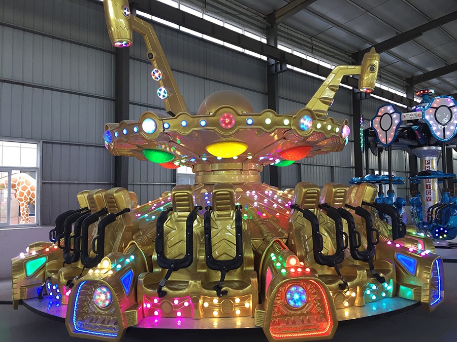 Аттракцион карусель Flying UFO из серии каруселей типа Круговая – красочное и увлекательное развлечение как для детей, так и для взрослых. Развлекательный аттракцион карусель Flying UFO – отличный вариант для торговых и игровых центров, зон отдыха, городских парков и площадей. Преимущества аттракциона Карусель Flying UFO: качественный дизайн, удобство и простота в управлении и эксплуатации, устойчивость конструкции, безопасность использования. Надежный электромеханизм приводит карусель Flying UFO в движение, плюс – оригинальное музыкальное сопровождение вызывает положительные эмоции у посетителей. Аттракцион Карусель Flying UFO оборудована по последнему слову техники и отвечает всем международным стандартам Украины. Карусели Flying UFO в развлекательных центрах и игровых детских центрах – это только самые фантастические моменты для детей и взрослых.