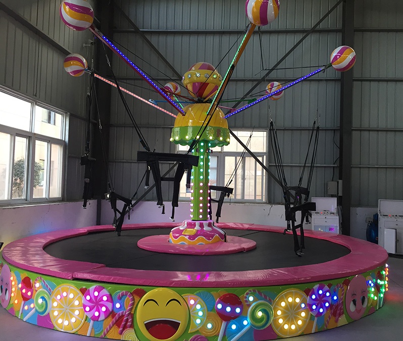 Аттракцион карусель Happy Bungee из серии каруселей типа Батутные – красочное и увлекательное развлечение как для детей, так и для взрослых. Развлекательный аттракцион карусель Happy Bungee – отличный вариант для торговых и игровых центров, зон отдыха, городских парков и площадей. Преимущества аттракциона Карусель Happy Bungee: качественный дизайн, удобство и простота в управлении и эксплуатации, устойчивость конструкции, безопасность использования. Надежный электромеханизм приводит карусель Happy Bungee в движение, плюс – оригинальное музыкальное сопровождение вызывает положительные эмоции у посетителей. Аттракцион Карусель Happy Bungee оборудована по последнему слову техники и отвечает всем международным стандартам Украины. Карусели Happy Bungee в развлекательных центрах и игровых детских центрах – это только самые фантастические моменты для детей и взрослых.