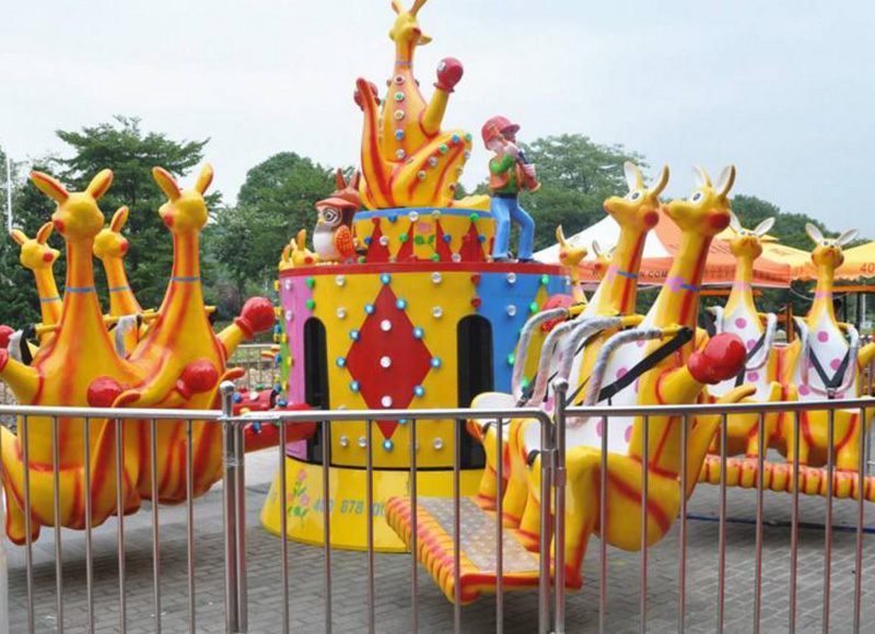 Аттракцион карусель Jumping Kangaroo из серии каруселей типа Джет – красочное и увлекательное развлечение как для детей, так и для взрослых. Развлекательный аттракцион карусель Jumping Kangaroo – отличный вариант для торговых и игровых центров, зон отдыха, городских парков и площадей. Преимущества аттракциона Карусель Jumping Kangaroo: качественный дизайн, удобство и простота в управлении и эксплуатации, устойчивость конструкции, безопасность использования. Надежный электромеханизм приводит карусель Jumping Kangaroo в движение, плюс – оригинальное музыкальное сопровождение вызывает положительные эмоции у посетителей. Аттракцион Карусель Jumping Kangaroo оборудована по последнему слову техники и отвечает всем международным стандартам Украины. Карусели Jumping Kangaroo в развлекательных центрах и игровых детских центрах – это только самые фантастические моменты для детей и взрослых.