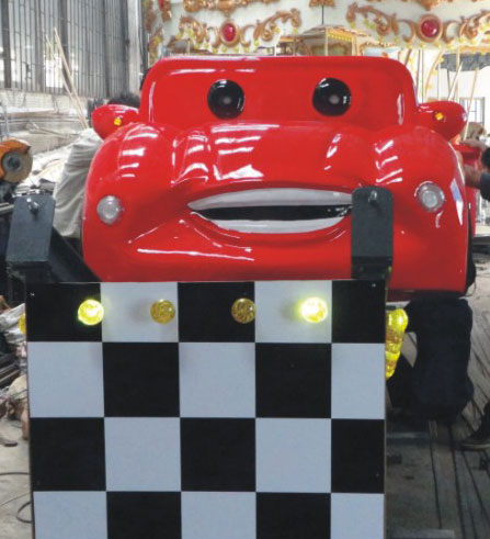 Аттракцион Молния Маквин стилизирован под главного героя мультфильма Тачки – Молнии Маквин.