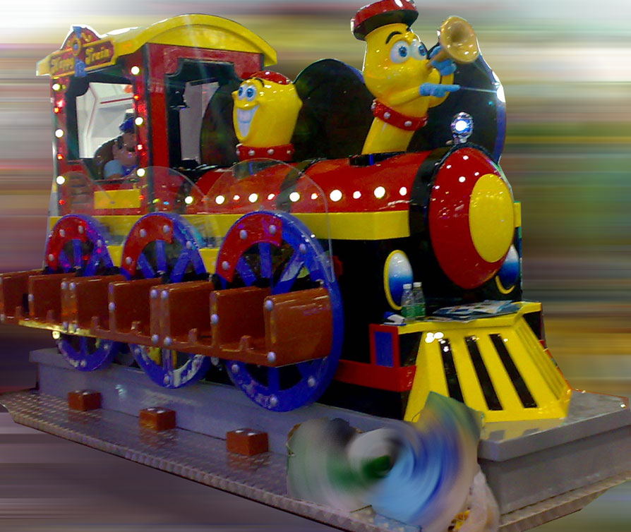 На детской карусели на 12 мест Веселый паровоз могут покататься 12 счастливых малышей.