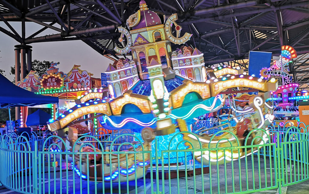 В развлекательных парках, торговых и игровых центрах, лунапарках и городских ярмарках можно встретить различные виды аттракционов Карусели. Аттракционы Карусели – это яркое и красочное развлекательное оборудование, приносящие веселье и положительные эмоции, а также поднимающее уровень адреналина у посетителей. Такие аттракционы предназначены для детей, подростков и их родителей. Принцип работы каруселей отличается в зависимости от категории каруселей. В круговых электрических каруселях фигурки с посадочными местами для детей двигаются по кругу на прочной круглой платформе, в цепочных каруселях: кабинки подвешены на цепях и двигаются по кругу вокруг столба-основания. В каруселях для детей типа Колесо обозрения кабинки двигаются по вертикальной оси, а в каруселях Американские горки и Карусели типа Башня – кабинки двигаются по горизонтальным или вертикальным проложенным рельсам. Все детские аттракционы Карусели предусматривают звуковые и световые эффекты, что повышает интерес к ним со стороны посетителей, а также данное развлекательное оборудование предлагаются в комплекте с ограждением или без него.