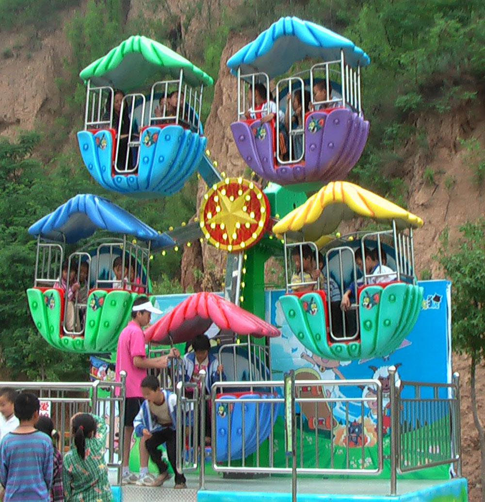 Детская карусель Колесо обозрения на 20 местявляется очень ярким детским аттракционом и собирает вокруг себя всех посетителей парка. Детская карусель Колесо обозрения на 20 мест приводится в движение с помощью электро-пневматического механизма и состоит из пяти кабинок на 4 посадочных места, двигающихся по кругу вертикально.