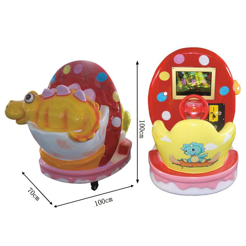 Корпус качалки Dinosaur Yellow выполнен из пластмассы в ярких тонах и имеют очень привлекательный дизайн для детей. Аттракцион детская качалка Dinosaur Yellow имеет электропривод, работает от 220 вольт, на корпусе аттракциона для детей установлен видео монитор для игры.