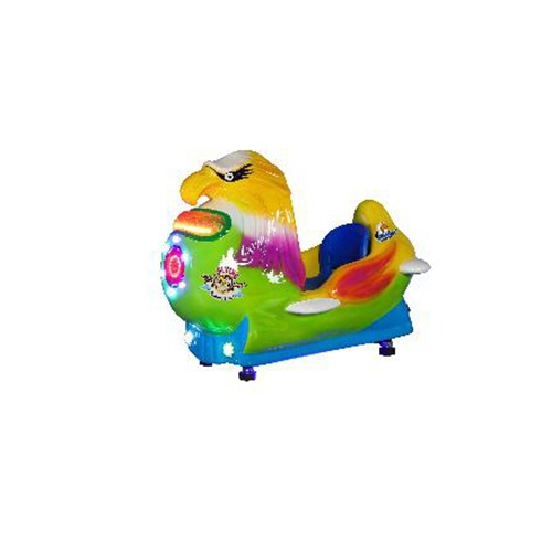 Корпус качалки Eagle выполнен из пластмассы в ярких тонах и имеют очень привлекательный дизайн для детей. Аттракцион детская качалка Eagle имеет электропривод, работает от 220 вольт, на корпусе аттракциона для детей установлен видео монитор для игры.