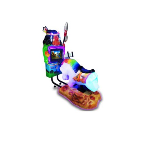 Корпус качалки Indian Cowboy выполнен из пластмассы в ярких тонах и имеют очень привлекательный дизайн для детей. Аттракцион детская качалка Indian Cowboy имеет электропривод, работает от 220 вольт, на корпусе аттракциона для детей установлен видео монитор для игры.