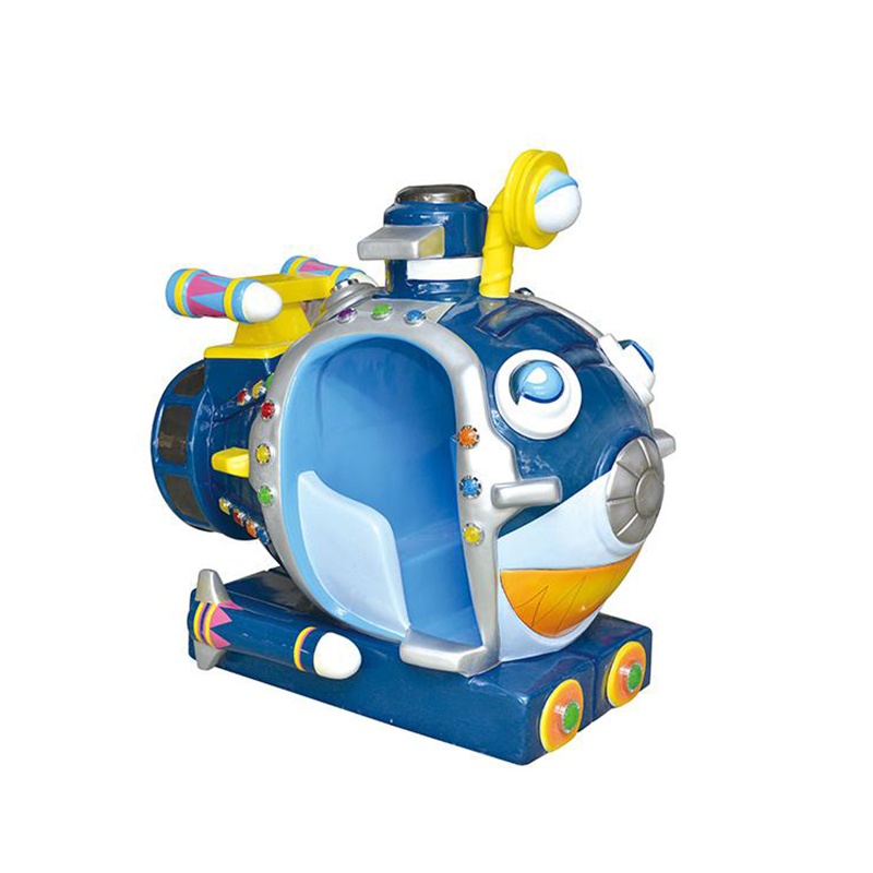 Корпус качалки Submarine выполнен из пластмассы в ярких тонах и имеют очень привлекательный дизайн для детей. Аттракцион детская качалка Submarine имеет электропривод, работает от 220 вольт, на корпусе аттракциона для детей установлен видео монитор для игры.