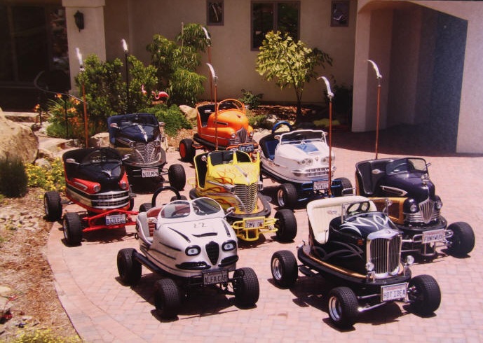 Идея такого использования бампер-каров впервые пришла в голову Тому Райту из Калифорнии, который придумал использовать списанные микроавтомобили из парка развлечений Long Beach Pike. Бампер кары получили вторую жизнь — вместо электромоторов были установлены бензиновые мотоциклетные двигатели Harley Davidson. Однако мощные харлеевские движки буквально сотрясали маленькие автомашинки. Решили проблему установкой 4х-цилиндровых двигателей “Хонда” и “Кавасаки” объемом 500 — 750 куб. см., 6-ступенчатая механическая коробка передач, цепной привод, 10-дюймовые колеса.