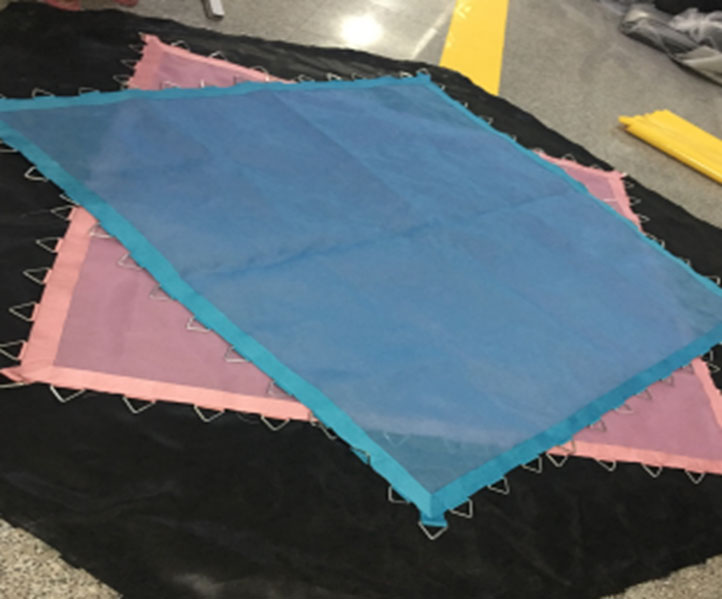 Комплектующие для детских лабиринтов Батут – это сетчатый квадрат с вшитыми по периметру скобами для крепления пружин. Детский игровой батут представляет собой прочную плетёную сетку, натянутую на раму при помощи металлических пружин. Материал, который используется для изготовления поверхности батута, не является эластичным сам по себе. Эластичность достигается за счет пружин, расположенных по периметру или окружности сетки.
