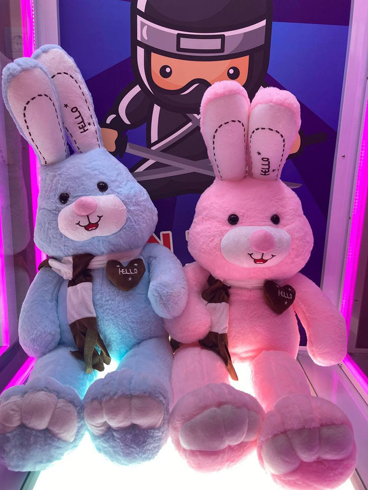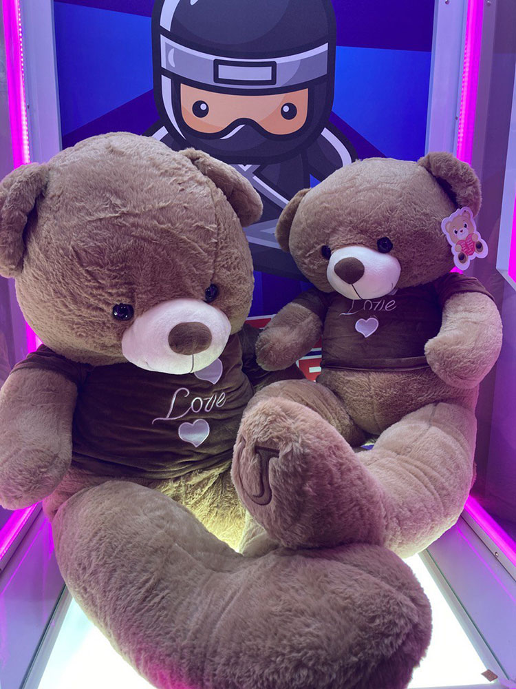 Большие плюшевые игрушки используются в качестве призов в аттракционе Кран Машина (Хватайка или Зверолов) Ninja Cut.