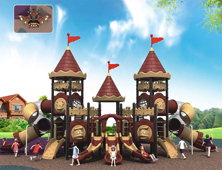 Яркая и разноцветная многоуровневая детская площадка предоставляет возможность для подвижных игр для детей разного возраста как на открытом воздухе, так и в помещении. Наиболее популярны в Украине комбинированные игровые площадки для улицы и помещений в различной комплектации. Некоторые детские комплексы выполнены в форме кораблей или мини-городов. Декораторы украшают игровые элементы фигурами в виде животных или просто красят конструкции в яркие цвета. Игровые комплексы для детской площадки оснащены двойными и одинарными горками на разных уровнях, спиральными и прямыми тоннелями, веревочными и винтовыми лестницами, детскими качелями, домиками с башенками и мостиками, тайными укрытиями, стенками для лазания, турниками и батутами. Особое внимание уделяется материалу, из которого изготовлен детский игровой комплекс – это качественный, устойчивый к перепадам температур, пластик и высокопрочная сталь. Металлическая основа обеспечивает прочность конструкции, яркий пластик помогает достичь привлекательности дизайна, обеспечивает гладкую, ровную, комфортную и беопасную поверхность. Для подстраховки площадки под опасными местами и для полной безопасности детей используется резиновое напольное покрытие.