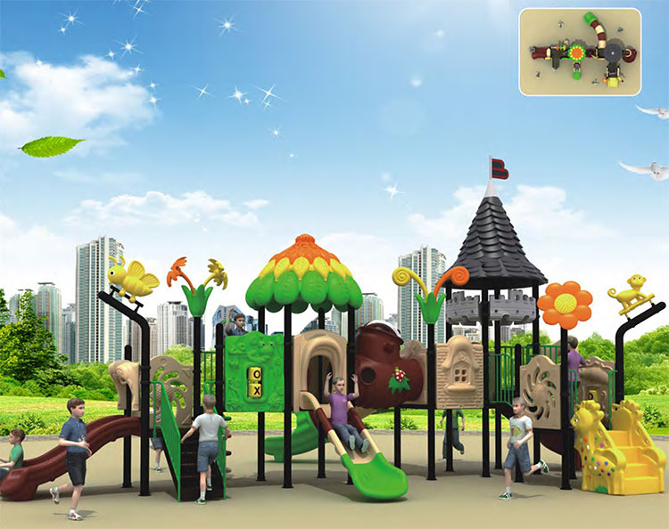 Яркая и разноцветная многоуровневая детская площадка предоставляет возможность для подвижных игр для детей разного возраста как на открытом воздухе, так и в помещении. Наиболее популярны в Украине комбинированные игровые площадки для улицы и помещений в различной комплектации. Некоторые детские комплексы выполнены в форме кораблей или мини-городов. Декораторы украшают игровые элементы фигурами в виде животных или просто красят конструкции в яркие цвета. Игровые комплексы для детской площадки оснащены двойными и одинарными горками на разных уровнях, спиральными и прямыми тоннелями, веревочными и винтовыми лестницами, детскими качелями, домиками с башенками и мостиками, тайными укрытиями, стенками для лазания, турниками и батутами. Особое внимание уделяется материалу, из которого изготовлен детский игровой комплекс – это качественный, устойчивый к перепадам температур, пластик и высокопрочная сталь. Металлическая основа обеспечивает прочность конструкции, яркий пластик помогает достичь привлекательности дизайна, обеспечивает гладкую, ровную, комфортную и беопасную поверхность. Для подстраховки площадки под опасными местами и для полной безопасности детей используется резиновое напольное покрытие.