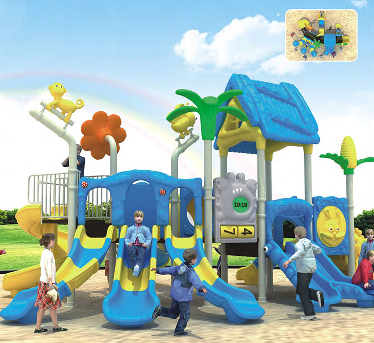 Яркая и разноцветная многоуровневая детская площадка предоставляет возможность для подвижных игр для детей разного возраста как на открытом воздухе, так и в помещении. Наиболее популярны в Украине комбинированные игровые площадки для улицы и помещений в различной комплектации. Некоторые детские комплексы выполнены в форме кораблей или мини-городов. Декораторы украшают игровые элементы фигурами в виде животных или просто красят конструкции в яркие цвета. Игровые комплексы для детской площадки оснащены двойными и одинарными горками на разных уровнях, спиральными и прямыми тоннелями, веревочными и винтовыми лестницами, детскими качелями, домиками с башенками и мостиками, тайными укрытиями, стенками для лазания, турниками и батутами. Особое внимание уделяется материалу, из которого изготовлен детский игровой комплекс – это качественный, устойчивый к перепадам температур, пластик и высокопрочная сталь. Металлическая основа обеспечивает прочность конструкции, яркий пластик помогает достичь привлекательности дизайна, обеспечивает гладкую, ровную, комфортную и беопасную поверхность. Для подстраховки площадки под опасными местами и для полной безопасности детей используется резиновое напольное покрытие.