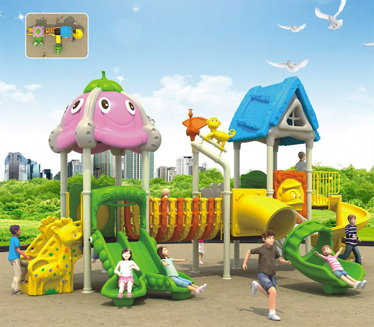 Яркая и разноцветная многоуровневая детская площадка предоставляет возможность для подвижных игр для детей разного возраста как на открытом воздухе, так и в помещении. Наиболее популярны в Украине комбинированные игровые площадки для улицы и помещений в различной комплектации. Некоторые детские комплексы выполнены в форме кораблей или мини-городов. Декораторы украшают игровые элементы фигурами в виде животных или просто красят конструкции в яркие цвета. Игровые комплексы для детской площадки оснащены двойными и одинарными горками на разных уровнях, спиральными и прямыми тоннелями, веревочными и винтовыми лестницами, детскими качелями, домиками с башенками и мостиками, тайными укрытиями, стенками для лазания, турниками и батутами. Особое внимание уделяется материалу, из которого изготовлен детский игровой комплекс – это качественный, устойчивый к перепадам температур, пластик и высокопрочная сталь. Металлическая основа обеспечивает прочность конструкции, яркий пластик помогает достичь привлекательности дизайна, обеспечивает гладкую, ровную, комфортную и беопасную поверхность. Для подстраховки площадки под опасными местами и для полной безопасности детей используется резиновое напольное покрытие.