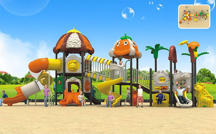 Яркая и разноцветная многоуровневая детская площадка предоставляет возможность для подвижных игр для детей разного возраста как на открытом воздухе, так и в помещении. Наиболее популярны в Украине комбинированные игровые площадки для улицы и помещений в различной комплектации. Некоторые детские комплексы выполнены в форме кораблей или мини-городов. Декораторы украшают игровые элементы фигурами в виде животных или просто красят конструкции в яркие цвета. Игровые комплексы для детской площадки оснащены двойными и одинарными горками на разных уровнях, спиральными и прямыми тоннелями, веревочными и винтовыми лестницами, детскими качелями, домиками с башенками и мостиками, тайными укрытиями, стенками для лазания, турниками и батутами. Особое внимание уделяется материалу, из которого изготовлен детский игровой комплекс – это качественный, устойчивый к перепадам температур, пластик и высокопрочная сталь. Металлическая основа обеспечивает прочность конструкции, яркий пластик помогает достичь привлекательности дизайна, обеспечивает гладкую, ровную, комфортную и беопасную поверхность. Для подстраховки площадки под опасными местами и для полной безопасности детей используется резиновое напольное покрытие.
