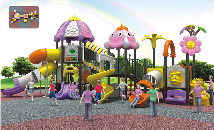 Яркая и разноцветная многоуровневая детская площадка предоставляет возможность для подвижных игр для детей разного возраста как на открытом воздухе, так и в помещении. Наиболее популярны в Украине комбинированные игровые площадки для улицы и помещений в различной комплектации. Некоторые детские комплексы выполнены в форме кораблей или мини-городов. Декораторы украшают игровые элементы фигурами в виде животных или просто красят конструкции в яркие цвета. Игровые комплексы для детской площадки оснащены двойными и одинарными горками на разных уровнях, спиральными и прямыми тоннелями, веревочными и винтовыми лестницами, детскими качелями, домиками с башенками и мостиками, тайными укрытиями, стенками для лазания, турниками и батутами. Особое внимание уделяется материалу, из которого изготовлен детский игровой комплекс – это качественный, устойчивый к перепадам температур, пластик и высокопрочная сталь. Металлическая основа обеспечивает прочность конструкции, яркий пластик помогает достичь привлекательности дизайна, обеспечивает гладкую, ровную, комфортную и беопасную поверхность. Для подстраховки площадки под опасными местами и для полной безопасности детей используется резиновое напольное покрытие.