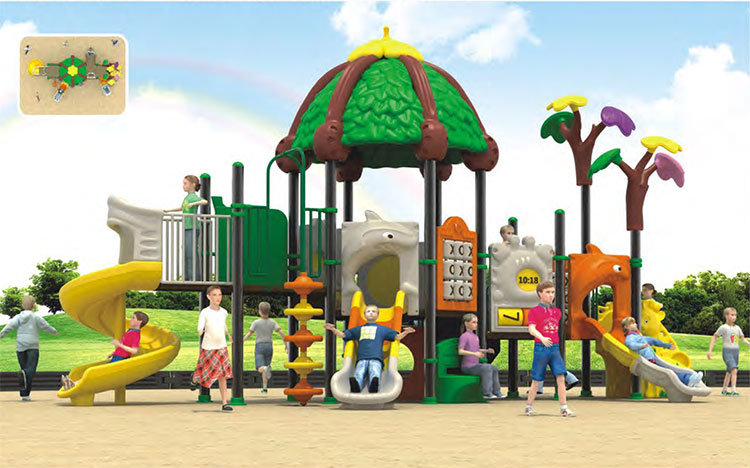 Яркая и разноцветная многоуровневая детская площадка предоставляет возможность для подвижных игр для детей разного возраста как на открытом воздухе, так и в помещении. Наиболее популярны в Украине комбинированные игровые площадки для улицы и помещений в различной комплектации. Некоторые детские комплексы выполнены в форме кораблей или мини-городов. Декораторы украшают игровые элементы фигурами в виде животных или просто красят конструкции в яркие цвета. Игровые комплексы для детской площадки оснащены двойными и одинарными горками на разных уровнях, спиральными и прямыми тоннелями, веревочными и винтовыми лестницами, детскими качелями, домиками с башенками и мостиками, тайными укрытиями, стенками для лазания, турниками и батутами. Особое внимание уделяется материалу, из которого изготовлен детский игровой комплекс – это качественный, устойчивый к перепадам температур, пластик и высокопрочная сталь. Металлическая основа обеспечивает прочность конструкции, яркий пластик помогает достичь привлекательности дизайна, обеспечивает гладкую, ровную, комфортную и беопасную поверхность. Для подстраховки площадки под опасными местами и для полной безопасности детей используется резиновое напольное покрытие.