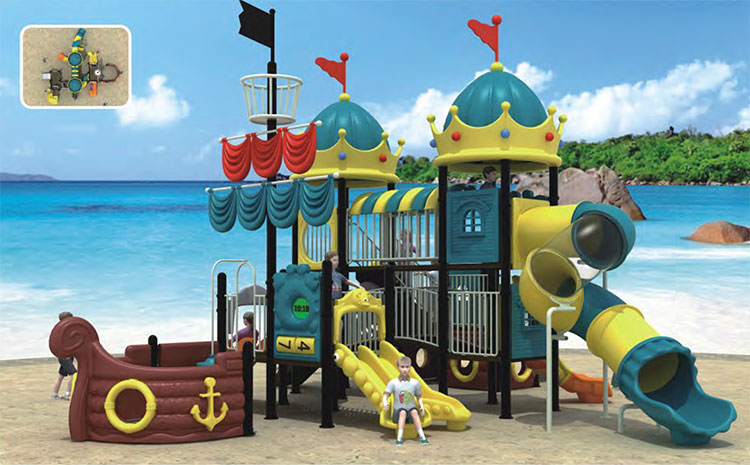Яркая и разноцветная многоуровневая детская площадка предоставляет возможность для подвижных игр для детей разного возраста как на открытом воздухе, так и в помещении. Наиболее популярны в Украине комбинированные игровые площадки для улицы и помещений в различной комплектации. Некоторые детские комплексы выполнены в форме кораблей или мини-городов. Декораторы украшают игровые элементы фигурами в виде животных или просто красят конструкции в яркие цвета. Игровые комплексы для детской площадки оснащены двойными и одинарными горками на разных уровнях, спиральными и прямыми тоннелями, веревочными и винтовыми лестницами, детскими качелями, домиками с башенками и мостиками, тайными укрытиями, стенками для лазания, турниками и батутами. Особое внимание уделяется материалу, из которого изготовлен детский игровой комплекс – это качественный, устойчивый к перепадам температур, пластик и высокопрочная сталь. Металлическая основа обеспечивает прочность конструкции, яркий пластик помогает достичь привлекательности дизайна, обеспечивает гладкую, ровную, комфортную и беопасную поверхность. Для подстраховки площадки под опасными местами и для полной безопасности детей используется резиновое напольное покрытие.