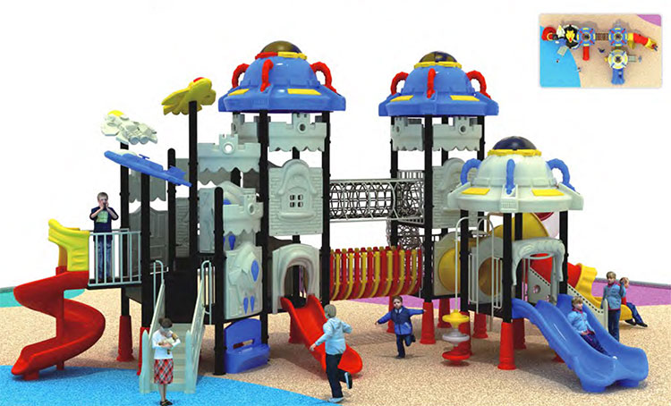 Яркая и разноцветная многоуровневая детская площадка предоставляет возможность для подвижных игр для детей разного возраста как на открытом воздухе, так и в помещении. Наиболее популярны в Украине комбинированные игровые площадки для улицы и помещений в различной комплектации. Некоторые детские комплексы выполнены в форме кораблей или мини-городов. Декораторы украшают игровые элементы фигурами в виде животных или просто красят конструкции в яркие цвета. Игровые комплексы для детской площадки оснащены двойными и одинарными горками на разных уровнях, спиральными и прямыми тоннелями, веревочными и винтовыми лестницами, детскими качелями, домиками с башенками и мостиками, тайными укрытиями, стенками для лазания, турниками и батутами. Особое внимание уделяется материалу, из которого изготовлен детский игровой комплекс – это качественный, устойчивый к перепадам температур, пластик и высокопрочная сталь. Металлическая основа обеспечивает прочность конструкции, яркий пластик помогает достичь привлекательности дизайна, обеспечивает гладкую, ровную, комфортную и беопасную поверхность. Для подстраховки площадки под опасными местами и для полной безопасности детей используется резиновое напольное покрытие.