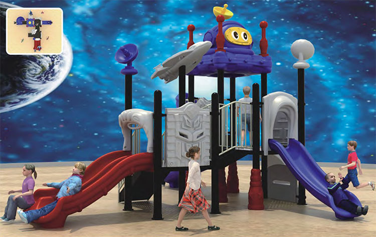 Яркая и разноцветная многоуровневая детская площадка предоставляет возможность для подвижных игр для детей разного возраста как на открытом воздухе, так и в помещении. Наиболее популярны в Украине комбинированные игровые площадки для улицы и помещений в различной комплектации. Некоторые детские комплексы выполнены в форме кораблей или мини-городов. Декораторы украшают игровые элементы фигурами в виде животных или просто красят конструкции в яркие цвета. Игровые комплексы для детской площадки оснащены двойными и одинарными горками на разных уровнях, спиральными и прямыми тоннелями, веревочными и винтовыми лестницами, детскими качелями, домиками с башенками и мостиками, тайными укрытиями, стенками для лазания, турниками и батутами. Особое внимание уделяется материалу, из которого изготовлен детский игровой комплекс – это качественный, устойчивый к перепадам температур, пластик и высокопрочная сталь. Металлическая основа обеспечивает прочность конструкции, яркий пластик помогает достичь привлекательности дизайна, обеспечивает гладкую, ровную, комфортную и беопасную поверхность. Для подстраховки площадки под опасными местами и для полной безопасности детей используется резиновое напольное покрытие.