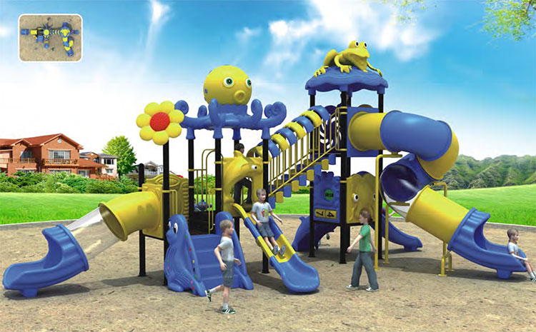 Яркая и разноцветная многоуровневая детская площадка предоставляет возможность для подвижных игр для детей разного возраста как на открытом воздухе, так и в помещении. Наиболее популярны в Украине комбинированные игровые площадки для улицы и помещений в различной комплектации. Некоторые детские комплексы выполнены в форме кораблей или мини-городов. Декораторы украшают игровые элементы фигурами в виде животных или просто красят конструкции в яркие цвета. Игровые комплексы для детской площадки оснащены двойными и одинарными горками на разных уровнях, спиральными и прямыми тоннелями, веревочными и винтовыми лестницами, детскими качелями, домиками с башенками и мостиками, тайными укрытиями, стенками для лазания, турниками и батутами. Особое внимание уделяется материалу, из которого изготовлен детский игровой комплекс – это качественный, устойчивый к перепадам температур, пластик и высокопрочная сталь. Металлическая основа обеспечивает прочность конструкции, яркий пластик помогает достичь привлекательности дизайна, обеспечивает гладкую, ровную, комфортную и беопасную поверхность. Для подстраховки площадки под опасными местами и для полной безопасности детей используется резиновое напольное покрытие.