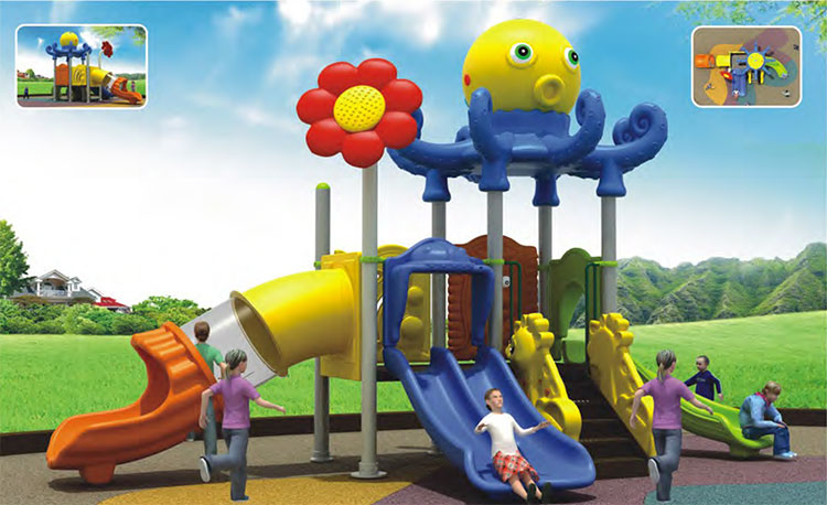 Яркая и разноцветная многоуровневая детская площадка предоставляет возможность для подвижных игр для детей разного возраста как на открытом воздухе, так и в помещении. Наиболее популярны в Украине комбинированные игровые площадки для улицы и помещений в различной комплектации. Некоторые детские комплексы выполнены в форме кораблей или мини-городов. Декораторы украшают игровые элементы фигурами в виде животных или просто красят конструкции в яркие цвета. Игровые комплексы для детской площадки оснащены двойными и одинарными горками на разных уровнях, спиральными и прямыми тоннелями, веревочными и винтовыми лестницами, детскими качелями, домиками с башенками и мостиками, тайными укрытиями, стенками для лазания, турниками и батутами. Особое внимание уделяется материалу, из которого изготовлен детский игровой комплекс – это качественный, устойчивый к перепадам температур, пластик и высокопрочная сталь. Металлическая основа обеспечивает прочность конструкции, яркий пластик помогает достичь привлекательности дизайна, обеспечивает гладкую, ровную, комфортную и беопасную поверхность. Для подстраховки площадки под опасными местами и для полной безопасности детей используется резиновое напольное покрытие.