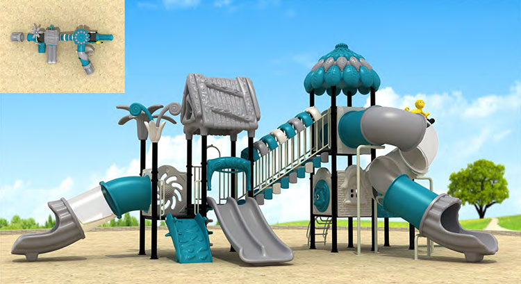 Яркая и разноцветная многоуровневая детская площадка предоставляет возможность для подвижных игр для детей разного возраста как на открытом воздухе, так и в помещении. Наиболее популярны в Украине комбинированные игровые площадки для улицы и помещений в различной комплектации. Некоторые детские комплексы выполнены в форме кораблей или мини-городов. Декораторы украшают игровые элементы фигурами в виде животных или просто красят конструкции в яркие цвета. Игровые комплексы для детской площадки оснащены двойными и одинарными горками на разных уровнях, спиральными и прямыми тоннелями, веревочными и винтовыми лестницами, детскими качелями, домиками с башенками и мостиками, тайными укрытиями, стенками для лазания, турниками и батутами. Особое внимание уделяется материалу, из которого изготовлен детский игровой комплекс – это качественный, устойчивый к перепадам температур, пластик и высокопрочная сталь. Металлическая основа обеспечивает прочность конструкции, яркий пластик помогает достичь привлекательности дизайна, обеспечивает гладкую, ровную, комфортную и беопасную поверхность. Для подстраховки площадки под опасными местами и для полной безопасности детей используется резиновое напольное покрытие.