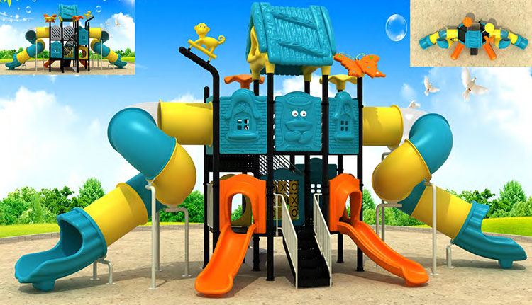 Яркая и разноцветная многоуровневая детская площадка предоставляет возможность для подвижных игр для детей разного возраста как на открытом воздухе, так и в помещении. Наиболее популярны в Украине комбинированные игровые площадки для улицы и помещений в различной комплектации. Некоторые детские комплексы выполнены в форме кораблей или мини-городов. Декораторы украшают игровые элементы фигурами в виде животных или просто красят конструкции в яркие цвета. Игровые комплексы для детской площадки оснащены двойными и одинарными горками на разных уровнях, спиральными и прямыми тоннелями, веревочными и винтовыми лестницами, детскими качелями, домиками с башенками и мостиками, тайными укрытиями, стенками для лазания, турниками и батутами. Особое внимание уделяется материалу, из которого изготовлен детский игровой комплекс – это качественный, устойчивый к перепадам температур, пластик и высокопрочная сталь. Металлическая основа обеспечивает прочность конструкции, яркий пластик помогает достичь привлекательности дизайна, обеспечивает гладкую, ровную, комфортную и беопасную поверхность. Для подстраховки площадки под опасными местами и для полной безопасности детей используется резиновое напольное покрытие.