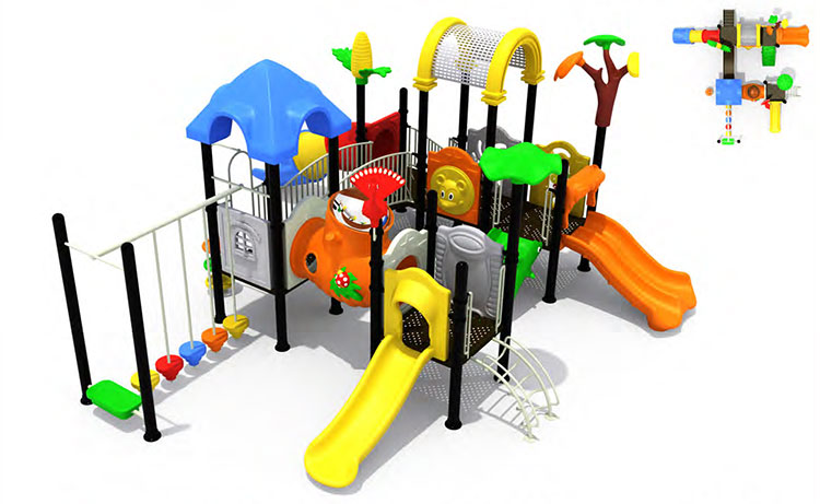 Яркая и разноцветная многоуровневая детская площадка предоставляет возможность для подвижных игр для детей разного возраста как на открытом воздухе, так и в помещении. Наиболее популярны в Украине комбинированные игровые площадки для улицы и помещений в различной комплектации. Некоторые детские комплексы выполнены в форме кораблей или мини-городов. Декораторы украшают игровые элементы фигурами в виде животных или просто красят конструкции в яркие цвета. Игровые комплексы для детской площадки оснащены двойными и одинарными горками на разных уровнях, спиральными и прямыми тоннелями, веревочными и винтовыми лестницами, детскими качелями, домиками с башенками и мостиками, тайными укрытиями, стенками для лазания, турниками и батутами. Особое внимание уделяется материалу, из которого изготовлен детский игровой комплекс – это качественный, устойчивый к перепадам температур, пластик и высокопрочная сталь. Металлическая основа обеспечивает прочность конструкции, яркий пластик помогает достичь привлекательности дизайна, обеспечивает гладкую, ровную, комфортную и беопасную поверхность. Для подстраховки площадки под опасными местами и для полной безопасности детей используется резиновое напольное покрытие.