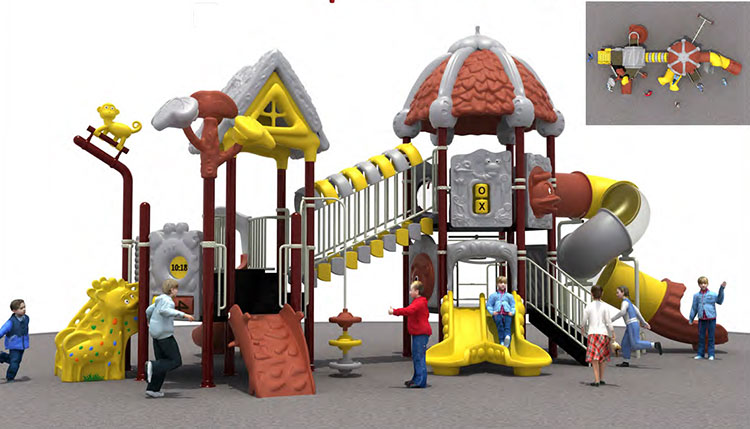 Яркая и разноцветная многоуровневая детская площадка предоставляет возможность для подвижных игр для детей разного возраста как на открытом воздухе, так и в помещении. Наиболее популярны в Украине комбинированные игровые площадки для улицы и помещений в различной комплектации. Некоторые детские комплексы выполнены в форме кораблей или мини-городов. Декораторы украшают игровые элементы фигурами в виде животных или просто красят конструкции в яркие цвета. Игровые комплексы для детской площадки оснащены двойными и одинарными горками на разных уровнях, спиральными и прямыми тоннелями, веревочными и винтовыми лестницами, детскими качелями, домиками с башенками и мостиками, тайными укрытиями, стенками для лазания, турниками и батутами. Особое внимание уделяется материалу, из которого изготовлен детский игровой комплекс – это качественный, устойчивый к перепадам температур, пластик и высокопрочная сталь. Металлическая основа обеспечивает прочность конструкции, яркий пластик помогает достичь привлекательности дизайна, обеспечивает гладкую, ровную, комфортную и беопасную поверхность. Для подстраховки площадки под опасными местами и для полной безопасности детей используется резиновое напольное покрытие.