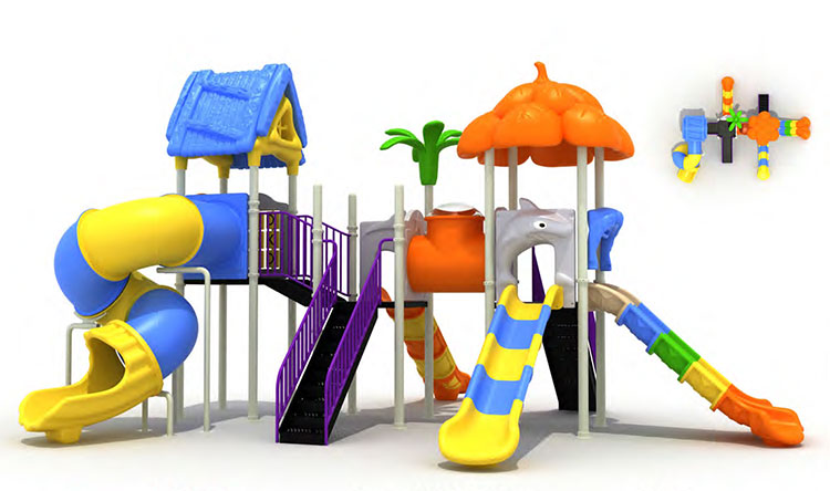 Яркая и разноцветная многоуровневая детская площадка предоставляет возможность для подвижных игр для детей разного возраста как на открытом воздухе, так и в помещении. Наиболее популярны в Украине комбинированные игровые площадки для улицы и помещений в различной комплектации. Некоторые детские комплексы выполнены в форме кораблей или мини-городов. Декораторы украшают игровые элементы фигурами в виде животных или просто красят конструкции в яркие цвета. Игровые комплексы для детской площадки оснащены двойными и одинарными горками на разных уровнях, спиральными и прямыми тоннелями, веревочными и винтовыми лестницами, детскими качелями, домиками с башенками и мостиками, тайными укрытиями, стенками для лазания, турниками и батутами. Особое внимание уделяется материалу, из которого изготовлен детский игровой комплекс – это качественный, устойчивый к перепадам температур, пластик и высокопрочная сталь. Металлическая основа обеспечивает прочность конструкции, яркий пластик помогает достичь привлекательности дизайна, обеспечивает гладкую, ровную, комфортную и беопасную поверхность. Для подстраховки площадки под опасными местами и для полной безопасности детей используется резиновое напольное покрытие.