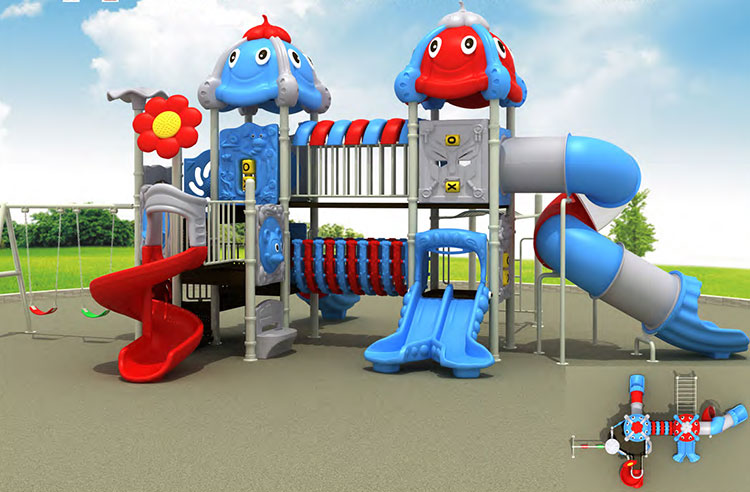 Яркая и разноцветная многоуровневая детская площадка предоставляет возможность для подвижных игр для детей разного возраста как на открытом воздухе, так и в помещении. Наиболее популярны в Украине комбинированные игровые площадки для улицы и помещений в различной комплектации. Некоторые детские комплексы выполнены в форме кораблей или мини-городов. Декораторы украшают игровые элементы фигурами в виде животных или просто красят конструкции в яркие цвета. Игровые комплексы для детской площадки оснащены двойными и одинарными горками на разных уровнях, спиральными и прямыми тоннелями, веревочными и винтовыми лестницами, детскими качелями, домиками с башенками и мостиками, тайными укрытиями, стенками для лазания, турниками и батутами. Особое внимание уделяется материалу, из которого изготовлен детский игровой комплекс – это качественный, устойчивый к перепадам температур, пластик и высокопрочная сталь. Металлическая основа обеспечивает прочность конструкции, яркий пластик помогает достичь привлекательности дизайна, обеспечивает гладкую, ровную, комфортную и беопасную поверхность. Для подстраховки площадки под опасными местами и для полной безопасности детей используется резиновое напольное покрытие.