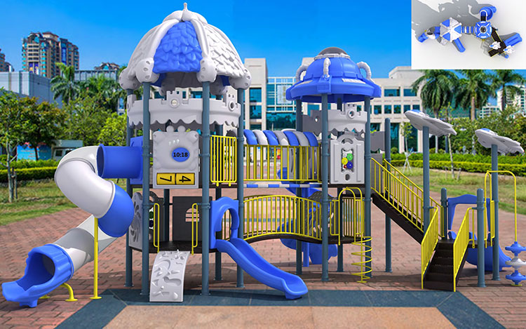 Яркая и разноцветная многоуровневая детская площадка предоставляет возможность для подвижных игр для детей разного возраста как на открытом воздухе, так и в помещении. Наиболее популярны в Украине комбинированные игровые площадки для улицы и помещений в различной комплектации. Некоторые детские комплексы выполнены в форме кораблей или мини-городов. Декораторы украшают игровые элементы фигурами в виде животных или просто красят конструкции в яркие цвета. Игровые комплексы для детской площадки оснащены двойными и одинарными горками на разных уровнях, спиральными и прямыми тоннелями, веревочными и винтовыми лестницами, детскими качелями, домиками с башенками и мостиками, тайными укрытиями, стенками для лазания, турниками и батутами. Особое внимание уделяется материалу, из которого изготовлен детский игровой комплекс – это качественный, устойчивый к перепадам температур, пластик и высокопрочная сталь. Металлическая основа обеспечивает прочность конструкции, яркий пластик помогает достичь привлекательности дизайна, обеспечивает гладкую, ровную, комфортную и беопасную поверхность. Для подстраховки площадки под опасными местами и для полной безопасности детей используется резиновое напольное покрытие.