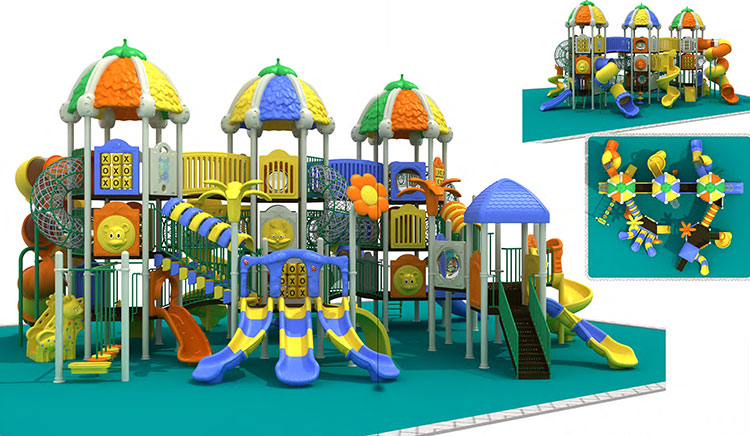 Яркая и разноцветная многоуровневая детская площадка предоставляет возможность для подвижных игр для детей разного возраста как на открытом воздухе, так и в помещении. Наиболее популярны в Украине комбинированные игровые площадки для улицы и помещений в различной комплектации. Некоторые детские комплексы выполнены в форме кораблей или мини-городов. Декораторы украшают игровые элементы фигурами в виде животных или просто красят конструкции в яркие цвета. Игровые комплексы для детской площадки оснащены двойными и одинарными горками на разных уровнях, спиральными и прямыми тоннелями, веревочными и винтовыми лестницами, детскими качелями, домиками с башенками и мостиками, тайными укрытиями, стенками для лазания, турниками и батутами. Особое внимание уделяется материалу, из которого изготовлен детский игровой комплекс – это качественный, устойчивый к перепадам температур, пластик и высокопрочная сталь. Металлическая основа обеспечивает прочность конструкции, яркий пластик помогает достичь привлекательности дизайна, обеспечивает гладкую, ровную, комфортную и беопасную поверхность. Для подстраховки площадки под опасными местами и для полной безопасности детей используется резиновое напольное покрытие.