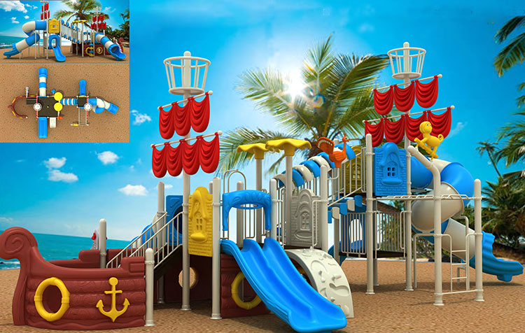 Яркая и разноцветная многоуровневая детская площадка предоставляет возможность для подвижных игр для детей разного возраста как на открытом воздухе, так и в помещении. Наиболее популярны в Украине комбинированные игровые площадки для улицы и помещений в различной комплектации. Некоторые детские комплексы выполнены в форме кораблей или мини-городов. Декораторы украшают игровые элементы фигурами в виде животных или просто красят конструкции в яркие цвета. Игровые комплексы для детской площадки оснащены двойными и одинарными горками на разных уровнях, спиральными и прямыми тоннелями, веревочными и винтовыми лестницами, детскими качелями, домиками с башенками и мостиками, тайными укрытиями, стенками для лазания, турниками и батутами. Особое внимание уделяется материалу, из которого изготовлен детский игровой комплекс – это качественный, устойчивый к перепадам температур, пластик и высокопрочная сталь. Металлическая основа обеспечивает прочность конструкции, яркий пластик помогает достичь привлекательности дизайна, обеспечивает гладкую, ровную, комфортную и беопасную поверхность. Для подстраховки площадки под опасными местами и для полной безопасности детей используется резиновое напольное покрытие.