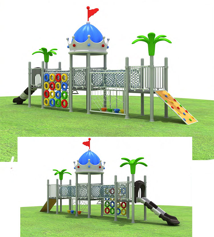 Яркая и разноцветная многоуровневая детская площадка предоставляет возможность для подвижных игр для детей разного возраста как на открытом воздухе, так и в помещении. Наиболее популярны в Украине комбинированные игровые площадки для улицы и помещений в различной комплектации. Некоторые детские комплексы выполнены в форме кораблей или мини-городов. Декораторы украшают игровые элементы фигурами в виде животных или просто красят конструкции в яркие цвета. Игровые комплексы для детской площадки оснащены двойными и одинарными горками на разных уровнях, спиральными и прямыми тоннелями, веревочными и винтовыми лестницами, детскими качелями, домиками с башенками и мостиками, тайными укрытиями, стенками для лазания, турниками и батутами. Особое внимание уделяется материалу, из которого изготовлен детский игровой комплекс – это качественный, устойчивый к перепадам температур, пластик и высокопрочная сталь. Металлическая основа обеспечивает прочность конструкции, яркий пластик помогает достичь привлекательности дизайна, обеспечивает гладкую, ровную, комфортную и беопасную поверхность. Для подстраховки площадки под опасными местами и для полной безопасности детей используется резиновое напольное покрытие.