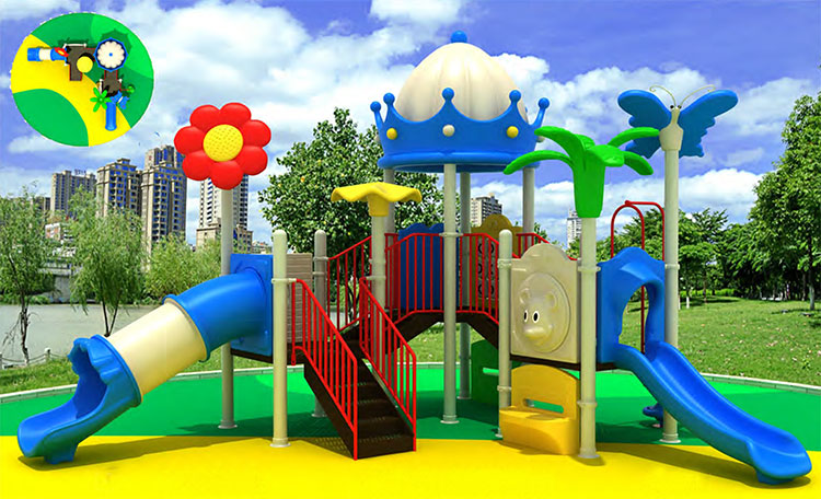Яркая и разноцветная многоуровневая детская площадка предоставляет возможность для подвижных игр для детей разного возраста как на открытом воздухе, так и в помещении. Наиболее популярны в Украине комбинированные игровые площадки для улицы и помещений в различной комплектации. Некоторые детские комплексы выполнены в форме кораблей или мини-городов. Декораторы украшают игровые элементы фигурами в виде животных или просто красят конструкции в яркие цвета. Игровые комплексы для детской площадки оснащены двойными и одинарными горками на разных уровнях, спиральными и прямыми тоннелями, веревочными и винтовыми лестницами, детскими качелями, домиками с башенками и мостиками, тайными укрытиями, стенками для лазания, турниками и батутами. Особое внимание уделяется материалу, из которого изготовлен детский игровой комплекс – это качественный, устойчивый к перепадам температур, пластик и высокопрочная сталь. Металлическая основа обеспечивает прочность конструкции, яркий пластик помогает достичь привлекательности дизайна, обеспечивает гладкую, ровную, комфортную и беопасную поверхность. Для подстраховки площадки под опасными местами и для полной безопасности детей используется резиновое напольное покрытие.