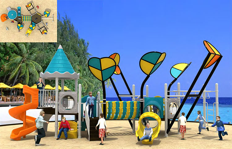 Яркая и разноцветная многоуровневая детская площадка предоставляет возможность для подвижных игр для детей разного возраста как на открытом воздухе, так и в помещении. Наиболее популярны в Украине комбинированные игровые площадки для улицы и помещений в различной комплектации. Некоторые детские комплексы выполнены в форме кораблей или мини-городов. Декораторы украшают игровые элементы фигурами в виде животных или просто красят конструкции в яркие цвета. Игровые комплексы для детской площадки оснащены двойными и одинарными горками на разных уровнях, спиральными и прямыми тоннелями, веревочными и винтовыми лестницами, детскими качелями, домиками с башенками и мостиками, тайными укрытиями, стенками для лазания, турниками и батутами. Особое внимание уделяется материалу, из которого изготовлен детский игровой комплекс – это качественный, устойчивый к перепадам температур, пластик и высокопрочная сталь. Металлическая основа обеспечивает прочность конструкции, яркий пластик помогает достичь привлекательности дизайна, обеспечивает гладкую, ровную, комфортную и беопасную поверхность. Для подстраховки площадки под опасными местами и для полной безопасности детей используется резиновое напольное покрытие.