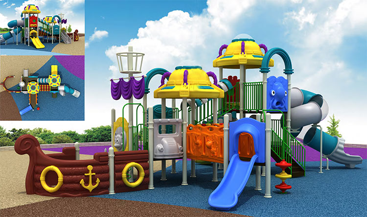Яркая и разноцветная многоуровневая детская площадка предоставляет возможность для подвижных игр для детей разного возраста как на открытом воздухе, так и в помещении. Наиболее популярны в Украине комбинированные игровые площадки для улицы и помещений в различной комплектации. Некоторые детские комплексы выполнены в форме кораблей или мини-городов. Декораторы украшают игровые элементы фигурами в виде животных или просто красят конструкции в яркие цвета. Игровые комплексы для детской площадки оснащены двойными и одинарными горками на разных уровнях, спиральными и прямыми тоннелями, веревочными и винтовыми лестницами, детскими качелями, домиками с башенками и мостиками, тайными укрытиями, стенками для лазания, турниками и батутами. Особое внимание уделяется материалу, из которого изготовлен детский игровой комплекс – это качественный, устойчивый к перепадам температур, пластик и высокопрочная сталь. Металлическая основа обеспечивает прочность конструкции, яркий пластик помогает достичь привлекательности дизайна, обеспечивает гладкую, ровную, комфортную и беопасную поверхность. Для подстраховки площадки под опасными местами и для полной безопасности детей используется резиновое напольное покрытие.