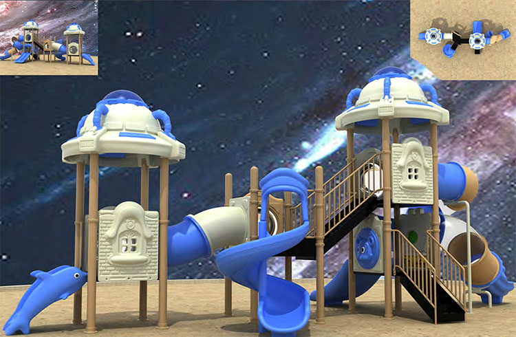 Яркая и разноцветная многоуровневая детская площадка предоставляет возможность для подвижных игр для детей разного возраста как на открытом воздухе, так и в помещении. Наиболее популярны в Украине комбинированные игровые площадки для улицы и помещений в различной комплектации. Некоторые детские комплексы выполнены в форме кораблей или мини-городов. Декораторы украшают игровые элементы фигурами в виде животных или просто красят конструкции в яркие цвета. Игровые комплексы для детской площадки оснащены двойными и одинарными горками на разных уровнях, спиральными и прямыми тоннелями, веревочными и винтовыми лестницами, детскими качелями, домиками с башенками и мостиками, тайными укрытиями, стенками для лазания, турниками и батутами. Особое внимание уделяется материалу, из которого изготовлен детский игровой комплекс – это качественный, устойчивый к перепадам температур, пластик и высокопрочная сталь. Металлическая основа обеспечивает прочность конструкции, яркий пластик помогает достичь привлекательности дизайна, обеспечивает гладкую, ровную, комфортную и беопасную поверхность. Для подстраховки площадки под опасными местами и для полной безопасности детей используется резиновое напольное покрытие.