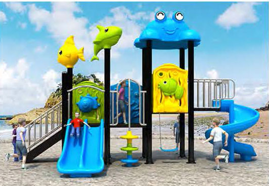 Яркая и разноцветная многоуровневая детская площадка предоставляет возможность для подвижных игр для детей разного возраста как на открытом воздухе, так и в помещении. Наиболее популярны в Украине комбинированные игровые площадки для улицы и помещений в различной комплектации. Некоторые детские комплексы выполнены в форме кораблей или мини-городов. Декораторы украшают игровые элементы фигурами в виде животных или просто красят конструкции в яркие цвета. Игровые комплексы для детской площадки оснащены двойными и одинарными горками на разных уровнях, спиральными и прямыми тоннелями, веревочными и винтовыми лестницами, детскими качелями, домиками с башенками и мостиками, тайными укрытиями, стенками для лазания, турниками и батутами. Особое внимание уделяется материалу, из которого изготовлен детский игровой комплекс – это качественный, устойчивый к перепадам температур, пластик и высокопрочная сталь. Металлическая основа обеспечивает прочность конструкции, яркий пластик помогает достичь привлекательности дизайна, обеспечивает гладкую, ровную, комфортную и беопасную поверхность. Для подстраховки площадки под опасными местами и для полной безопасности детей используется резиновое напольное покрытие.