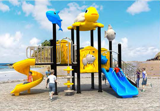 Яркая и разноцветная многоуровневая детская площадка предоставляет возможность для подвижных игр для детей разного возраста как на открытом воздухе, так и в помещении. Наиболее популярны в Украине комбинированные игровые площадки для улицы и помещений в различной комплектации. Некоторые детские комплексы выполнены в форме кораблей или мини-городов. Декораторы украшают игровые элементы фигурами в виде животных или просто красят конструкции в яркие цвета. Игровые комплексы для детской площадки оснащены двойными и одинарными горками на разных уровнях, спиральными и прямыми тоннелями, веревочными и винтовыми лестницами, детскими качелями, домиками с башенками и мостиками, тайными укрытиями, стенками для лазания, турниками и батутами. Особое внимание уделяется материалу, из которого изготовлен детский игровой комплекс – это качественный, устойчивый к перепадам температур, пластик и высокопрочная сталь. Металлическая основа обеспечивает прочность конструкции, яркий пластик помогает достичь привлекательности дизайна, обеспечивает гладкую, ровную, комфортную и беопасную поверхность. Для подстраховки площадки под опасными местами и для полной безопасности детей используется резиновое напольное покрытие.