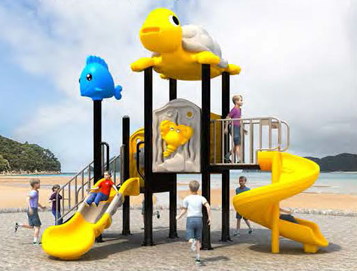Яркая и разноцветная многоуровневая детская площадка предоставляет возможность для подвижных игр для детей разного возраста как на открытом воздухе, так и в помещении. Наиболее популярны в Украине комбинированные игровые площадки для улицы и помещений в различной комплектации. Некоторые детские комплексы выполнены в форме кораблей или мини-городов. Декораторы украшают игровые элементы фигурами в виде животных или просто красят конструкции в яркие цвета. Игровые комплексы для детской площадки оснащены двойными и одинарными горками на разных уровнях, спиральными и прямыми тоннелями, веревочными и винтовыми лестницами, детскими качелями, домиками с башенками и мостиками, тайными укрытиями, стенками для лазания, турниками и батутами. Особое внимание уделяется материалу, из которого изготовлен детский игровой комплекс – это качественный, устойчивый к перепадам температур, пластик и высокопрочная сталь. Металлическая основа обеспечивает прочность конструкции, яркий пластик помогает достичь привлекательности дизайна, обеспечивает гладкую, ровную, комфортную и беопасную поверхность. Для подстраховки площадки под опасными местами и для полной безопасности детей используется резиновое напольное покрытие.
