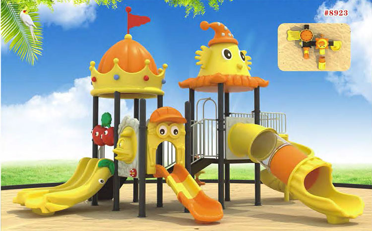 Яркая и разноцветная многоуровневая детская площадка предоставляет возможность для подвижных игр для детей разного возраста как на открытом воздухе, так и в помещении. Наиболее популярны в Украине комбинированные игровые площадки для улицы и помещений в различной комплектации. Некоторые детские комплексы выполнены в форме кораблей или мини-городов. Декораторы украшают игровые элементы фигурами в виде животных или просто красят конструкции в яркие цвета. Игровые комплексы для детской площадки оснащены двойными и одинарными горками на разных уровнях, спиральными и прямыми тоннелями, веревочными и винтовыми лестницами, детскими качелями, домиками с башенками и мостиками, тайными укрытиями, стенками для лазания, турниками и батутами. Особое внимание уделяется материалу, из которого изготовлен детский игровой комплекс – это качественный, устойчивый к перепадам температур, пластик и высокопрочная сталь. Металлическая основа обеспечивает прочность конструкции, яркий пластик помогает достичь привлекательности дизайна, обеспечивает гладкую, ровную, комфортную и беопасную поверхность. Для подстраховки площадки под опасными местами и для полной безопасности детей используется резиновое напольное покрытие.