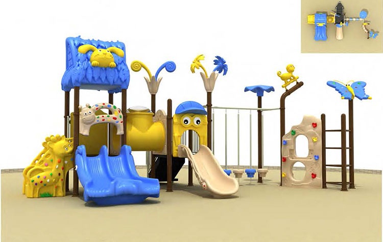 Яркая и разноцветная многоуровневая детская площадка предоставляет возможность для подвижных игр для детей разного возраста как на открытом воздухе, так и в помещении. Наиболее популярны в Украине комбинированные игровые площадки для улицы и помещений в различной комплектации. Некоторые детские комплексы выполнены в форме кораблей или мини-городов. Декораторы украшают игровые элементы фигурами в виде животных или просто красят конструкции в яркие цвета. Игровые комплексы для детской площадки оснащены двойными и одинарными горками на разных уровнях, спиральными и прямыми тоннелями, веревочными и винтовыми лестницами, детскими качелями, домиками с башенками и мостиками, тайными укрытиями, стенками для лазания, турниками и батутами. Особое внимание уделяется материалу, из которого изготовлен детский игровой комплекс – это качественный, устойчивый к перепадам температур, пластик и высокопрочная сталь. Металлическая основа обеспечивает прочность конструкции, яркий пластик помогает достичь привлекательности дизайна, обеспечивает гладкую, ровную, комфортную и беопасную поверхность. Для подстраховки площадки под опасными местами и для полной безопасности детей используется резиновое напольное покрытие.
