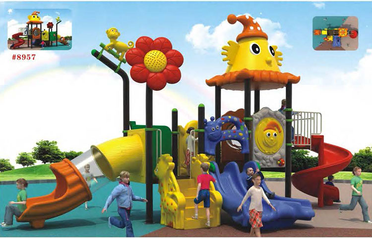 Яркая и разноцветная многоуровневая детская площадка предоставляет возможность для подвижных игр для детей разного возраста как на открытом воздухе, так и в помещении. Наиболее популярны в Украине комбинированные игровые площадки для улицы и помещений в различной комплектации. Некоторые детские комплексы выполнены в форме кораблей или мини-городов. Декораторы украшают игровые элементы фигурами в виде животных или просто красят конструкции в яркие цвета. Игровые комплексы для детской площадки оснащены двойными и одинарными горками на разных уровнях, спиральными и прямыми тоннелями, веревочными и винтовыми лестницами, детскими качелями, домиками с башенками и мостиками, тайными укрытиями, стенками для лазания, турниками и батутами. Особое внимание уделяется материалу, из которого изготовлен детский игровой комплекс – это качественный, устойчивый к перепадам температур, пластик и высокопрочная сталь. Металлическая основа обеспечивает прочность конструкции, яркий пластик помогает достичь привлекательности дизайна, обеспечивает гладкую, ровную, комфортную и беопасную поверхность. Для подстраховки площадки под опасными местами и для полной безопасности детей используется резиновое напольное покрытие.