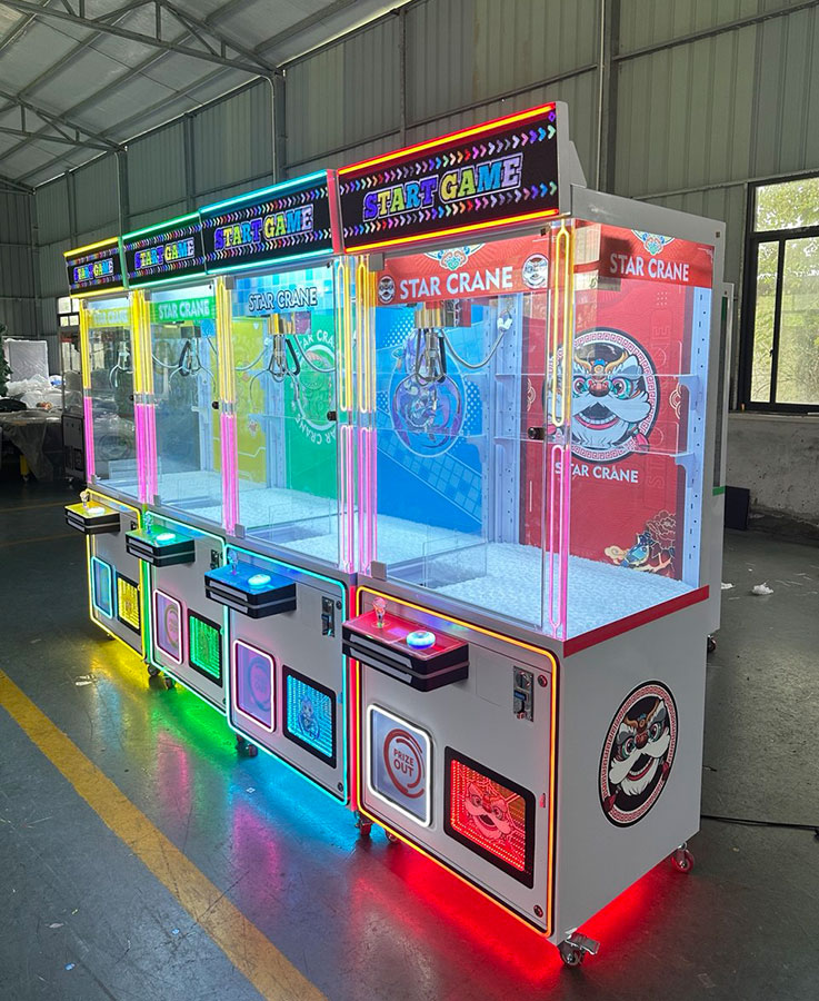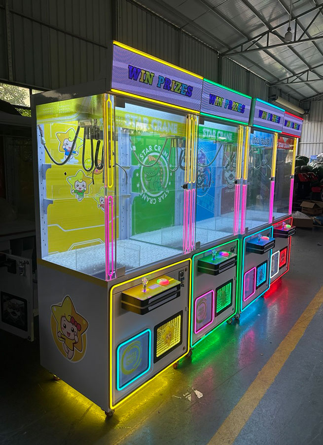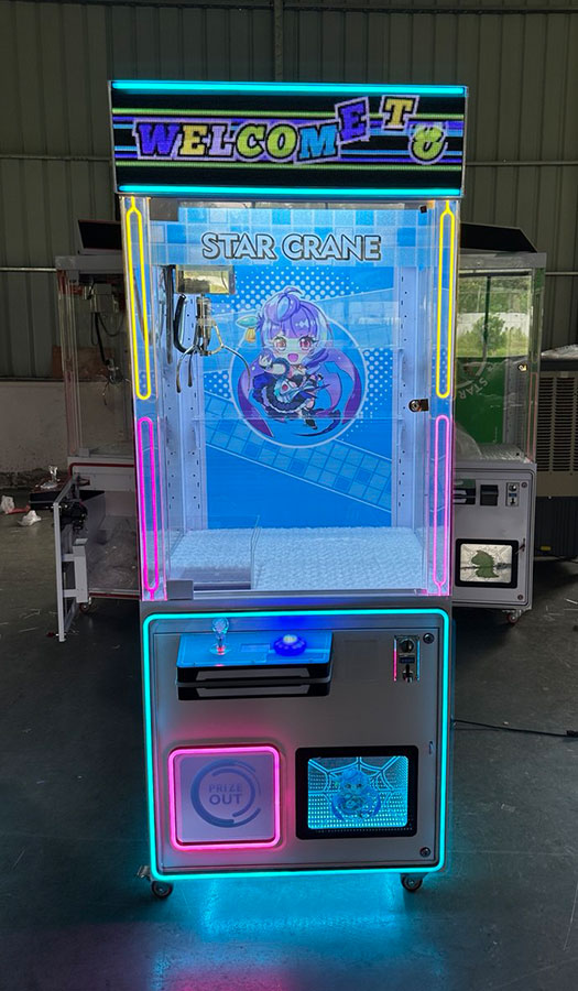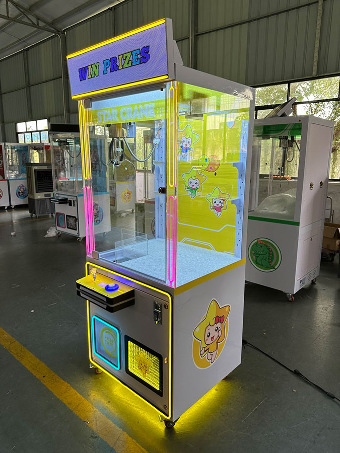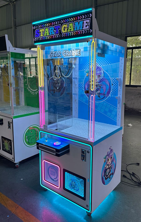 Развлекательный автомат с игрушками Кран машина Хватайка Зверилов Star Crane M1 позволяет поиграть малышам и их родителям в азартную игру: достать себе приз – мягкую плюшевую игрушку. Успех игры на кран машине зависит от ловкости и умения использования крана.