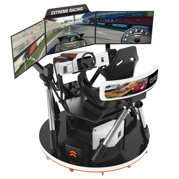 Увлекательный аттракцион нового поколения Виртуальная реальность 3 Screen Racing создает ощущение полного погружения и чувство физической реальности с помощью визуальных и физических спецэффектов.